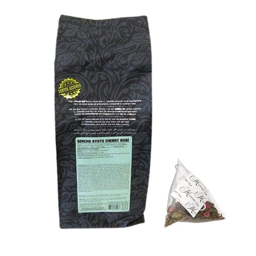 Metropolitan Tea Company - Sencha Kyoto Cherry Rose Green Tea bulk pyramid tea bags are plant-based, plastic-free, and compostable.