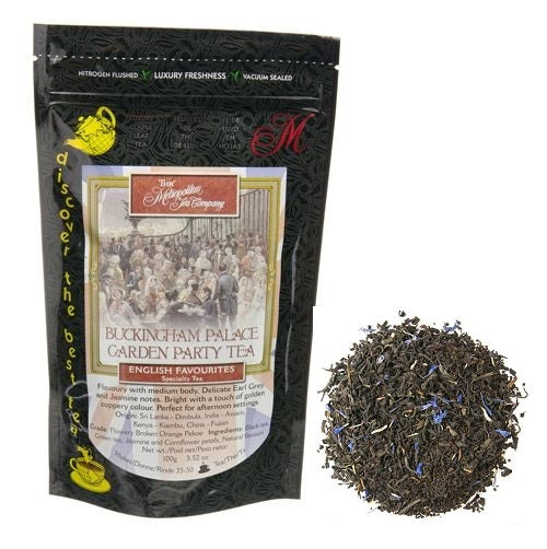 Buckingham Palace Garden Party Tea features a savoury with medium body. Delicate Earl Grey and Jasmine notes. Bright with a touch of golden coppery colour. Perfect for afternoon settings.