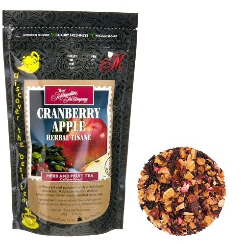 Metropolitan Tea Company - Cranberry Apple Tea. Full flavored and pungent with a rich fruity character. Add a cinnamon stick or a few cloves for a delicious mulled spice tea.