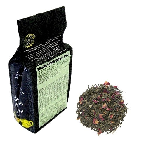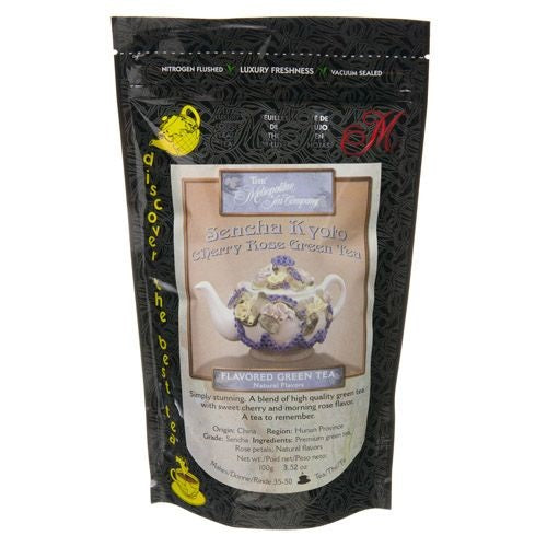 Metropolitan Tea Company - Sencha Kyoto Cherry Rose Green Tea. A blend of high quality green tea with sweet cherry flavoring & subtle rose hints give the tea a wonderful character.