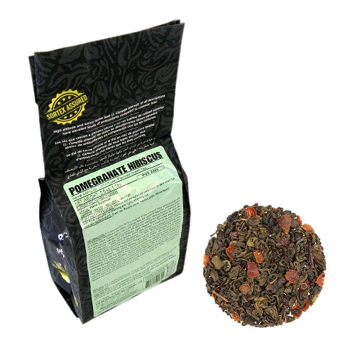 Metropolitan Tea Company - Pomegranate Hibiscus Green Tea. Hibiscus and pomegranate were made for each other! Tart with floral highlights - a cleansing and highly refreshing cup.