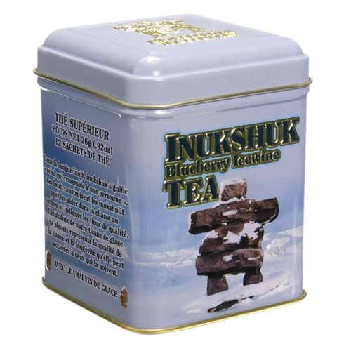 Our Metropolitan Tea Co. - Inukshuk Blueberry Icewine Tea features 12 pyramid teabags packed in a collector tin