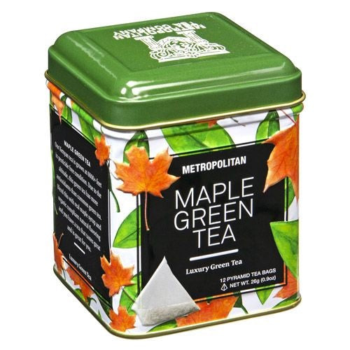 Our Metropolitan Tea Co. - Maple Green Tea features 12 teabags packed in a collector tin